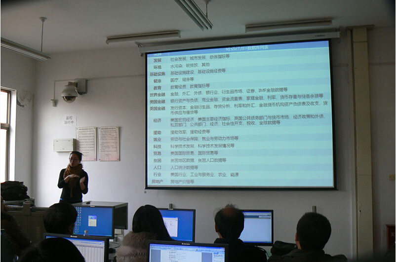 为方便老师们进行教学科研工作,学院利用2012年中央财政支持方高校专项资金购置了锐思数据库系列产品,主要包括:RESSET金融计算与建模实验平台、RESSET金融研究数据库、RESSET国际经济金融数据库、RESSET实验室管理系统、RESSET经济金融风险预警、商业银行综合软件、保险实务教学模拟系统、银行信贷实验教学平台等。为了使各位老师和同学能够使用该数据库及相关教学实验软件,学院于2014年1月2号下午在静思楼301教室邀请锐思数据库和上海硕研软件的培训师进行了专题培训,全体专业教师和研究生共100余人参加了培训。通过培训,大家进一步了解了锐思数据库和相关软件的内容、使用方法,为大家以后从事教学科研工作提供了好的支撑。