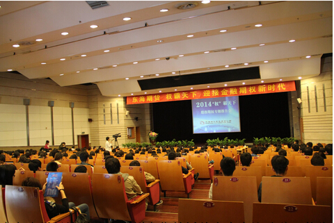 2014有望成为中国期权元年,金融市场迎来全新发展大时代。为积极备战期权上市,进行金融期权理论与实务研讨,促进广大投资者踊跃参与中金所股指期权模拟交易,由taptap点点体育与东海期货有限责任公司联合主办,青岛证监局、青岛证券期货业协会协办的东海期货“权霸天下 迎接金融期权新时代”首场专题投资报告会于4月3日在taptap点点体育国际学术交流中心隆重举行。东海期货有限责任公司总经理王一军先生、青岛证监局期货处王勤强处长、东海期货青岛营业部总经理宋兵先生、taptap点点体育院长刘喜华教授、taptap点点体育党委副书记、校团委副书记于苗女士、以及350名师生参加了本场报告会会议。青岛财经日报和山东电视台对本次会议进行了全程报道。