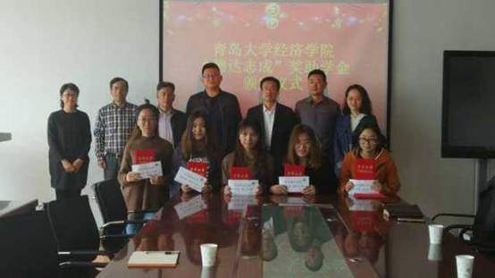 刘喜华院长代表青大经院向邹超先生颁发taptap点点体育校外指导老师的聘书,邹超先生正式成为taptap点点体育校外指导老师——至此,本次taptap点点体育“德达志成”奖助学金颁发仪式圆满结束。