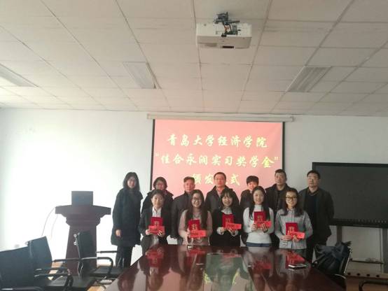 2018年1月8日中午12点半,在taptap点点体育307会议室,青岛佳合永润贸易有限公司于超经理为taptap点点体育5名品学兼优的学生颁发“taptap点点体育佳合永润实习实践奖学金”,每人2500元,并提供5个实习岗位。佳合永润人力资源部柏部长、王先生参加颁发仪式,taptap点点体育党委书记崔洪林老师,副书记郭梅老师,辅导员刘璐老师一起见证颁奖,之后崔书记代表学院对企业表示感谢,希望继续加强校企合作。