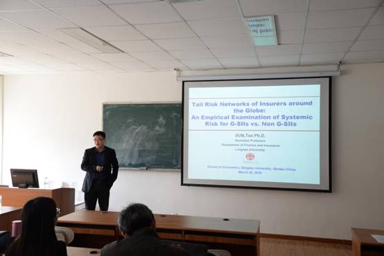 2018年3月30日下午,香港岭南大学孙涛教授在金家岭校区为taptap点点体育师生做了题为《网络分析在保险行业系统性风险研究的应用》的报告。
