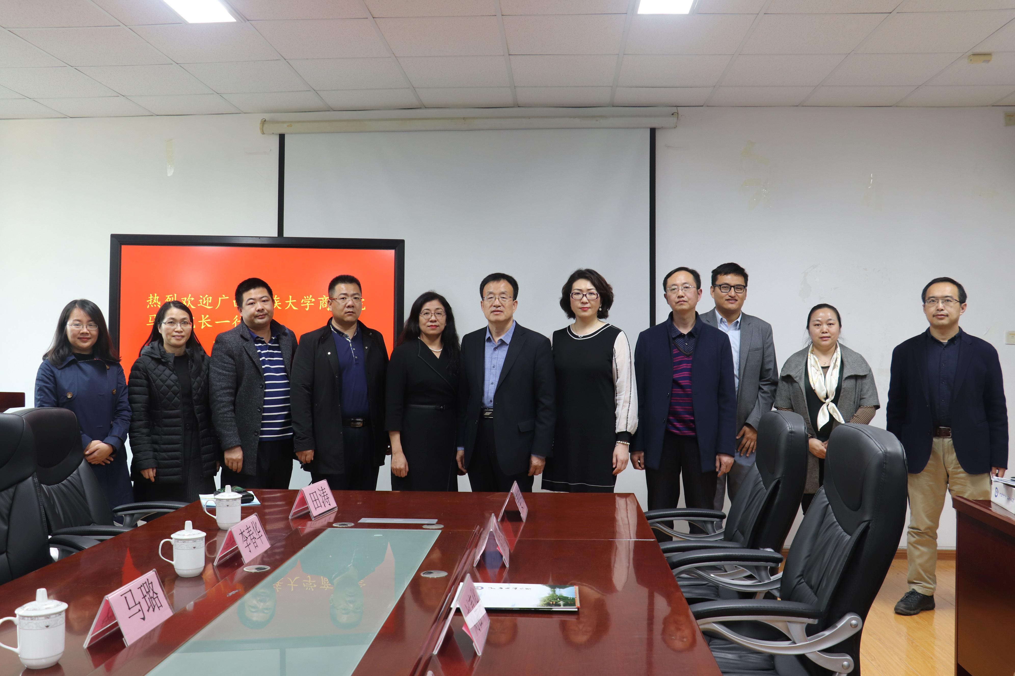 会上,刘喜华代表学院对广西民族大学商学院的来访表示了诚挚欢迎,介绍了学院办学情况与经验。随后,双方围绕人才培养专业与课程体系建设、创新创业教育、相关学科建设与运行管理、党的基层组织建设等方面进行了深入交流与探讨,并表示今后要保持密切交流和合作。