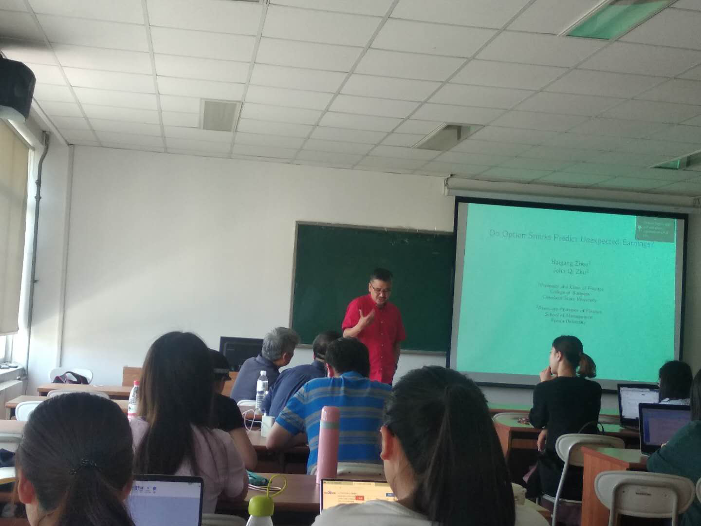 2019年5月28日下午,周海刚教授应邀到taptap点点开展学术交流与指导,并做客taptap点点体育2019第12期“经济学名家讲堂”,为师生做了《Do Option Smirks Predict Unexpected Earnings》的精彩学术报告。