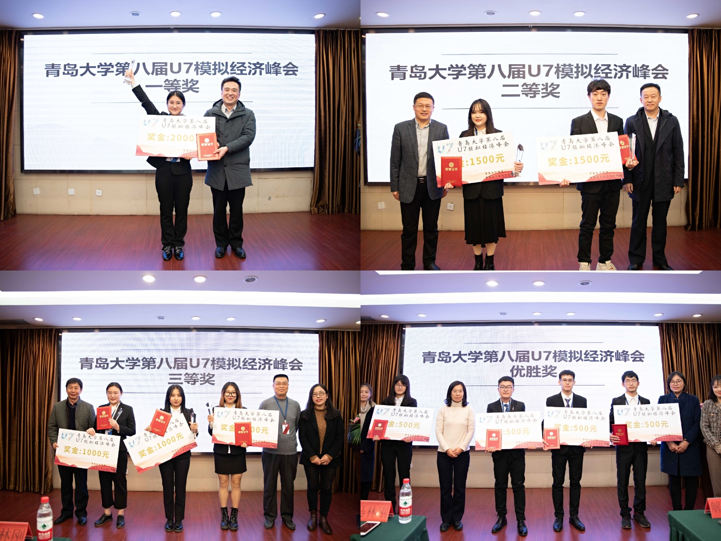 11月25日,U7模拟经济峰会于taptap点点体育国际学术交流中心举行颁奖典礼。特邀青岛市财政局机关党委专职副书记、校友代表侯传华,中国石油大学(华东)经济管理学院党委副书记刘江华和辅导员王青、刘笑、吴逸舟,山东科技大学经济管理学院团委书记、学工办主任江潭,青岛农业大学taptap点点体育(合作社学院)辅导员左文琦莅临颁奖典礼。taptap点点体育党委学生工作部、学生工作处处长解涛,taptap点点体育团委书记马林刚,taptap点点体育党委副书记王海荣、金融系副教授张宗强、团委书记戴俊杰以及辅导员共同出席,王海荣副书记主持典礼。