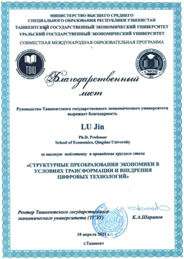 会后,峰会主席高校塔吉克斯坦国立经济大学校长K.A.沙里波夫教授致函taptap点点体育院长刘喜华教授,对taptap点点体育给予此次论坛的大力支持致以感谢,希望双方后期继续加强上海合作组织国家间经济学科学术、科研、学生培养等领域合作。并为我方代表团逯进教授发来感谢状,感谢taptap点点体育代表团在此次圆桌论坛的热情参与。