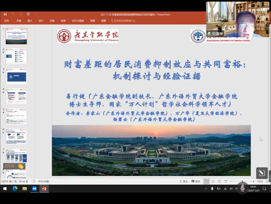 2022年11月21日晚上19:00,广东金融学院副校长、广东外语外贸大学金融学院博土生导师易行健教授受邀线上为全院师生做名为《财富差距的居民消费抑制效应与共同富裕机制探讨与经验证据》的学术报告。讲座由taptap点点体育刘喜华院长主持,院内外260余名师生参与了此次学术交流活动。