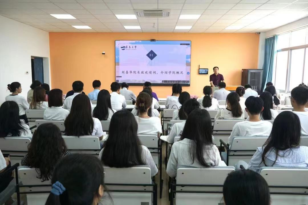 首先,刘喜华院长为新生致欢迎辞,并对学院的历史沿革、发展动态作了简要介绍。他指出,青大taptap点点体育成立三十多年来,学科建设、人才培养等各项工作都取得了长足进步,这离不开每一位青大人的共同努力。作为新一代青大人,同学们要以一腔热忱投身学术研究和社会实践,为新时代中国特色社会主义事业建设贡献力量。