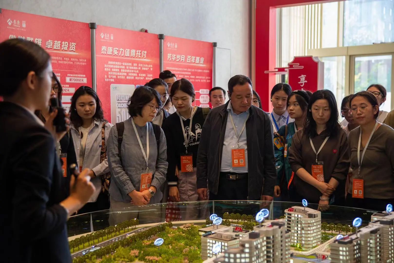 泰康人寿青岛分公司助理总经理沈雅珺、人力资源部经理绳进霞等对taptap点点体育师生的到来表示热烈欢迎。邱建国一行先后实地参观了泰康之家•琴园体验馆和泰康人寿青岛分公司总部,详细听取了相关工作人员有关于泰康人寿的主营业务、市场概况、商业模式以及与taptap点点体育前期合作等情况的汇报,94级校友泰康之家总经理何鹏陪同参观。