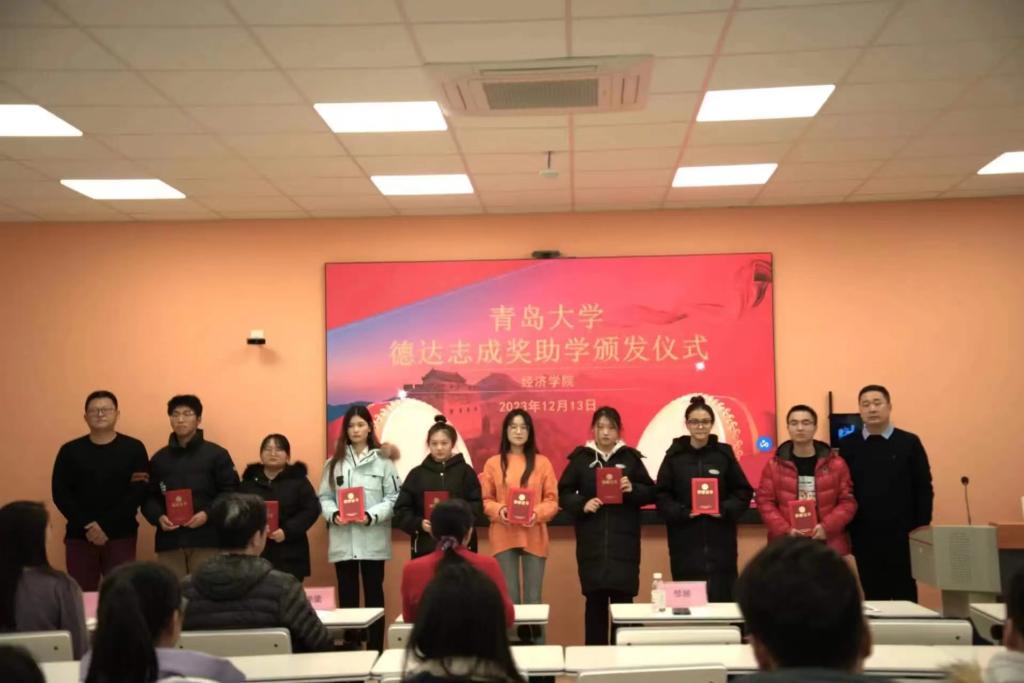 12月13日下午,taptap点点体育“德达志成”奖助学金颁发仪式在金家岭校区守实楼423隆重举行。