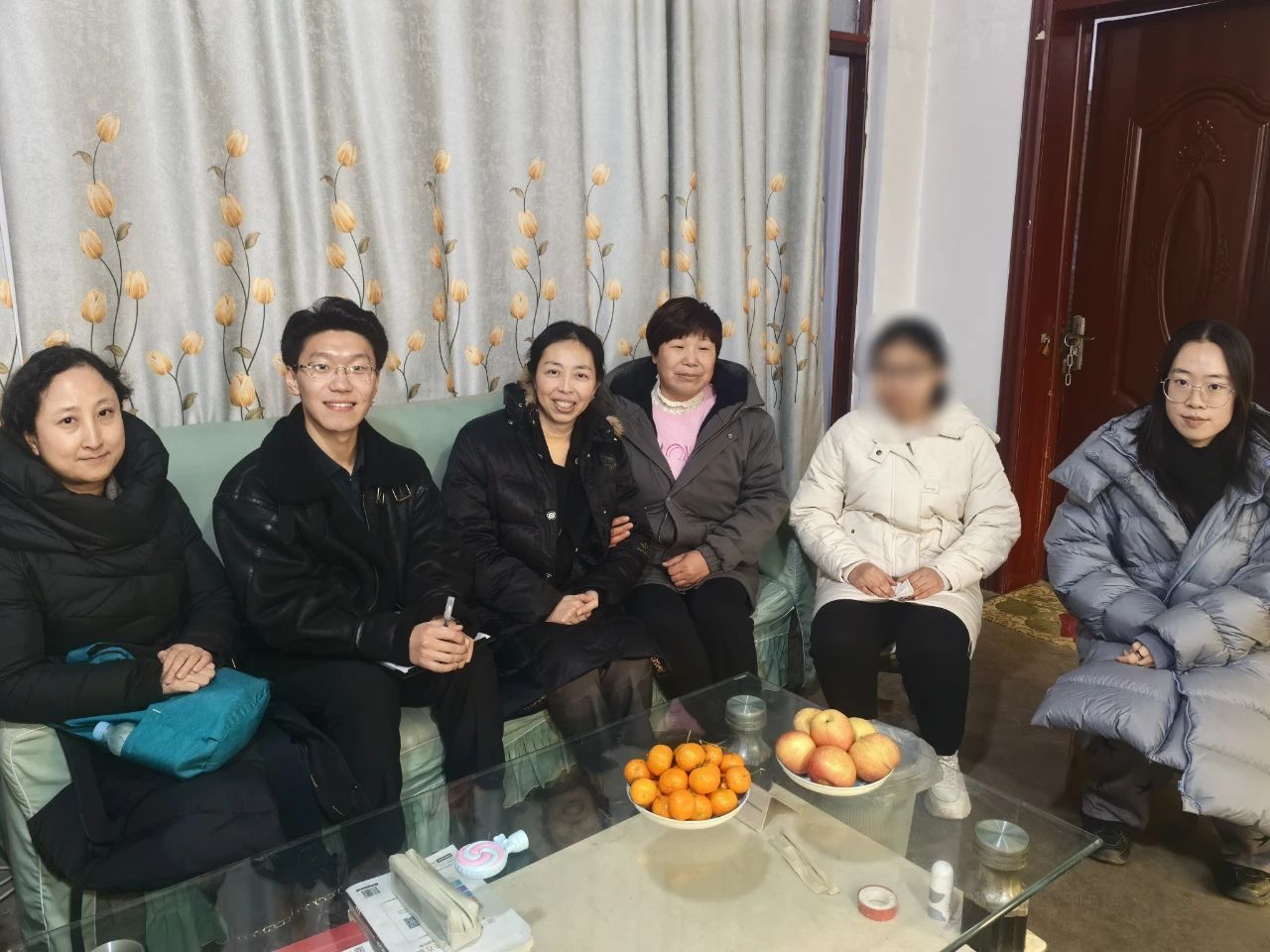 1月22日,taptap点点体育党委副书记于文洁及辅导员戴俊杰、吴不然、程漫漫、薛羽彤一行赴莒县和临沂走访慰问4名家庭经济困难学生。