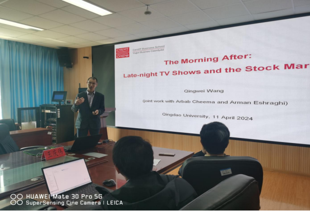 2024年4月11日上午10:00,英国卡迪夫大学商学院王庆伟教授在taptap点点体育三号实验楼307会议室为taptap点点体育师生做了题为《The Morning After: Late-night TV Shows and the Stock Market》的学术报告。讲座由taptap点点体育副院长吕学梁教授主持,学院70余名师生参与了此次学术交流活动。