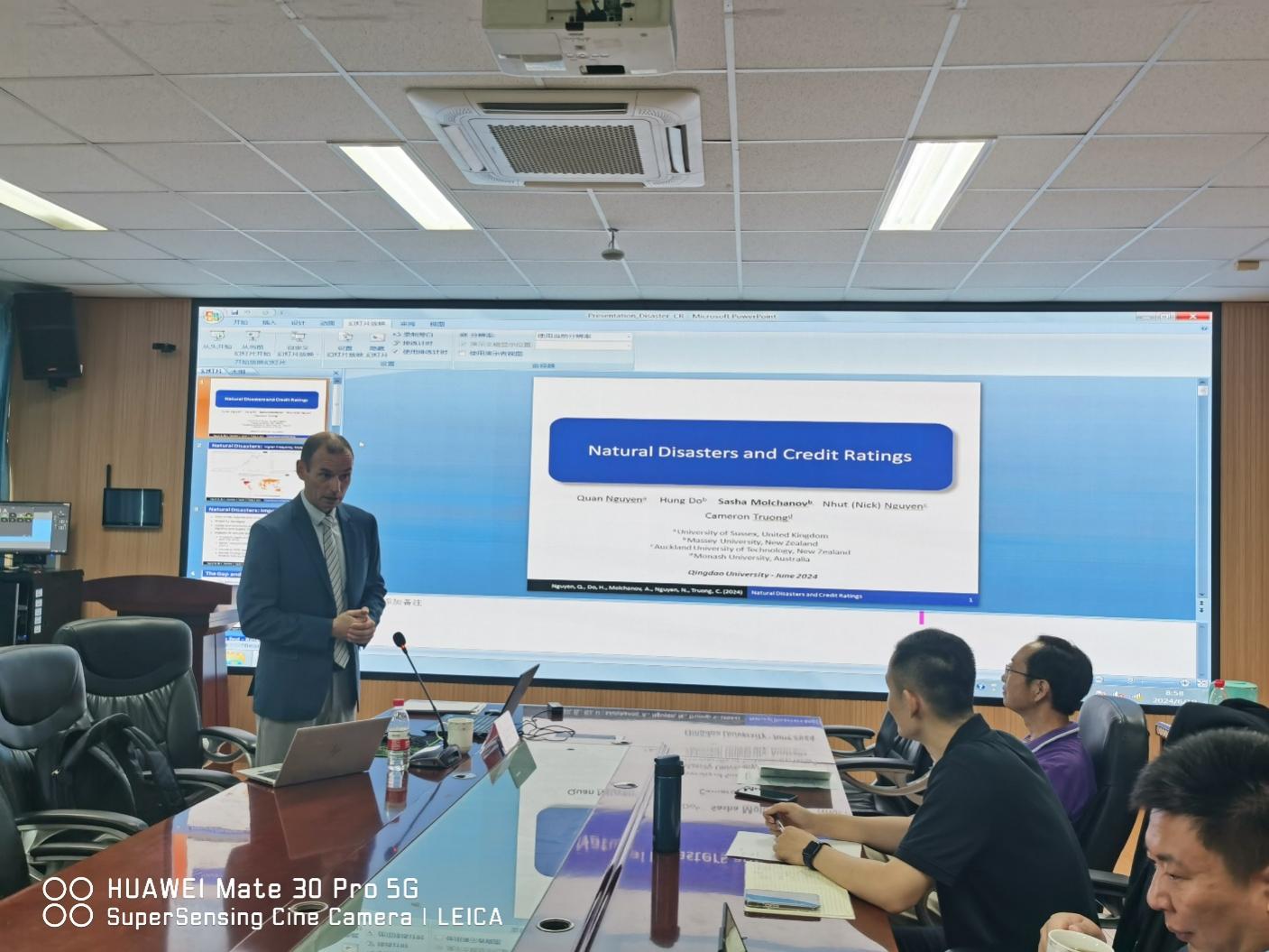 2024年6月19日上午9:00,新西兰梅西大学经济与金融学院的代理院长Sasha Molchanov教授在taptap点点体育三号实验楼307会议室,为taptap点点体育师生做了题为《Natural disasters and credit ratings》的学术报告。本次讲座由taptap点点体育副院长陈东景教授主持,学院60余名师生共同参与了此次学术交流活动。