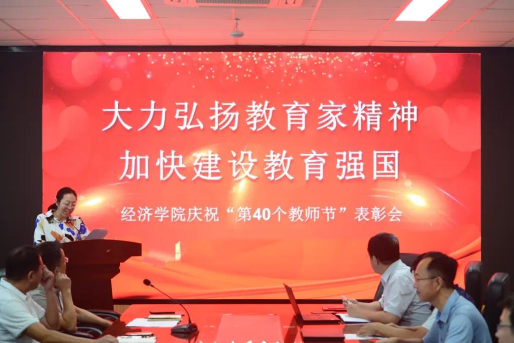 在第40个教师节来临之际,9月7日下午,taptap点点体育“大力弘扬教育家精神 加快建设教育强国”教师节表彰大会在金家岭校区守实楼307会议室举行。院党委书记邱建国,院长刘喜华,党委副书记于文洁,副院长陈东景、逯进、吕学梁与全体教职工欢聚一堂,共同庆祝第40个教师节。大会由党委副书记于文洁主持。