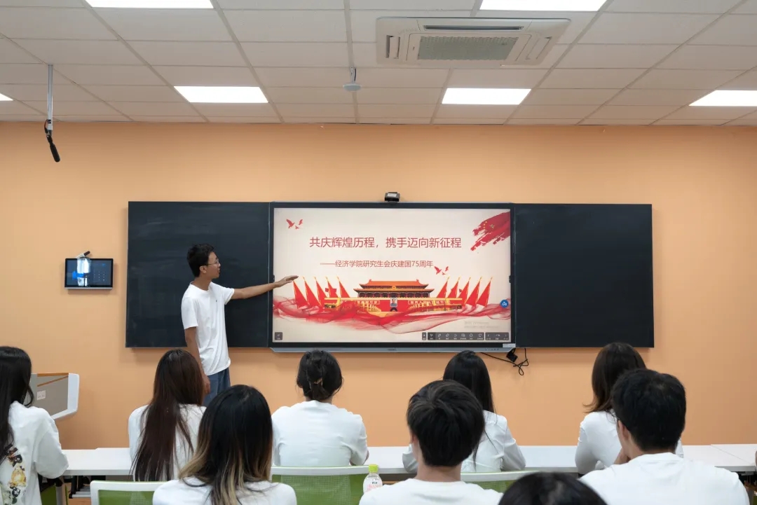 活动中,通过观看微电影《我和我的祖国》、新中国成立75周年知识问答、诗歌朗诵、合唱《我和我的祖国》等环节,研究生们重温了新中国的发展历程,进一步激发爱国热情、坚定使命担当。