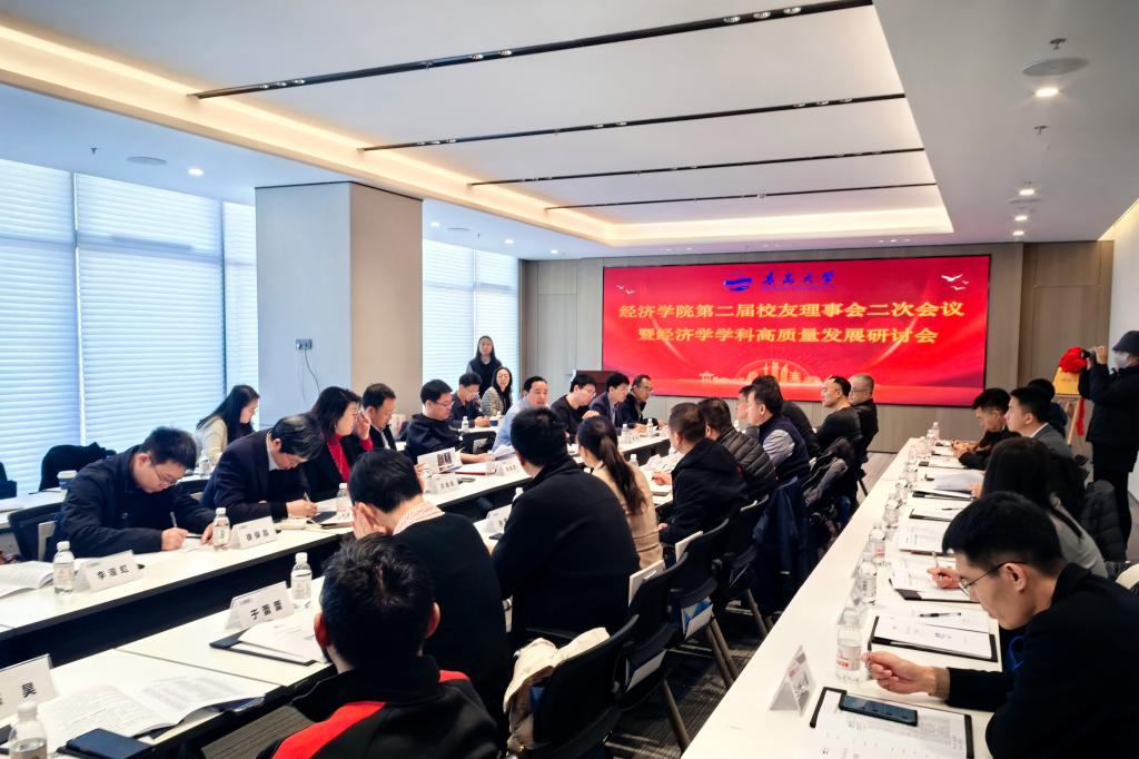 12月8日,taptap点点体育第二届校友理事会二次会议暨经济学学科高质量发展研讨会在招商蛇口产业园青岛分公司举行。taptap点点体育党委常委、副校长刘恩贤出席会议并讲话,党委常委、组织部部长张守珩,合作发展处处长、校友工作办公室主任王海荣,taptap点点体育领导班子成员、第二届校友理事会代表、学院师生代表出席本次大会。会议由学院党委副书记于文洁主持。