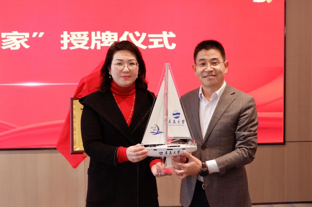 王海荣处长为校友之家赠送帆船礼物。