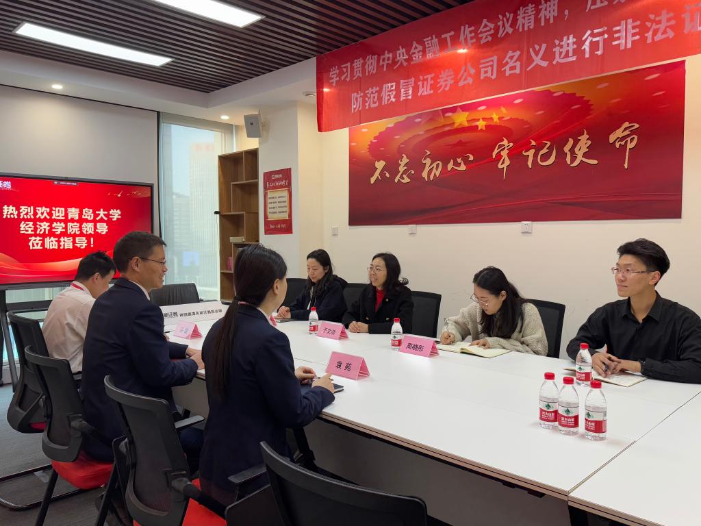 12月27日上午,taptap点点体育党委副书记于文洁,辅导员周小昀、周晓彤、吴不然带领毕业生赴国新证券股份有限公司开展“访企拓岗”行动。国新证券青岛营业部负责人王帅生,财富总监吕聪对taptap点点体育师生的到来表示热烈欢迎。