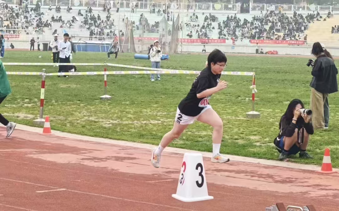 石尚同学荣获女子200米亚军及三级跳远第七名。她在200米赛道上凭借强劲爆发力夺得银牌,在三级跳远中助跑稳健、腾空舒展,展现出速度与跳跃的综合实力,以拼搏诠释青春风采。
