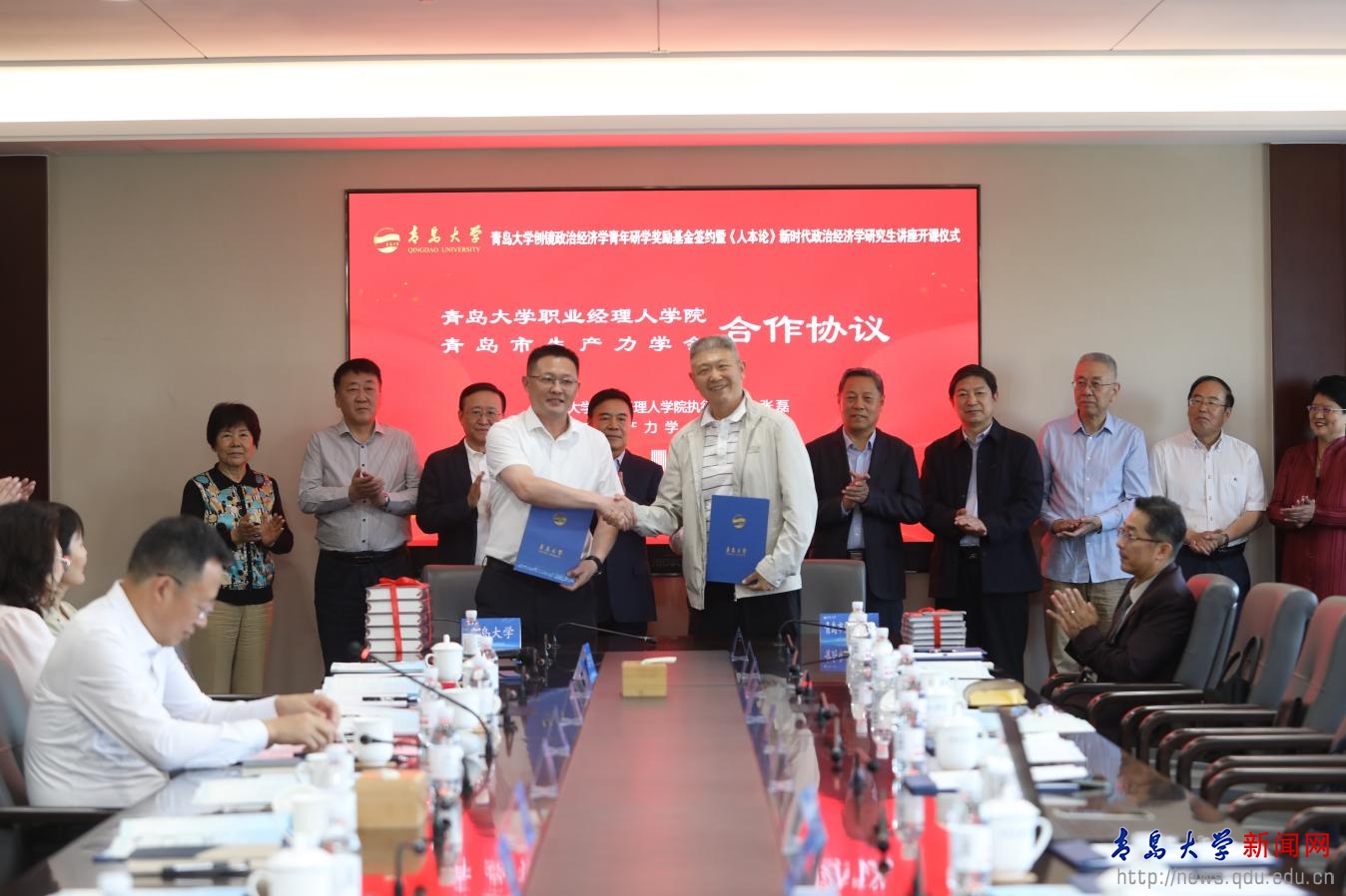 taptap点点体育职业经理人学院执行院长张磊与青岛市生产力学会秘书长冯显泉签署合作协议。