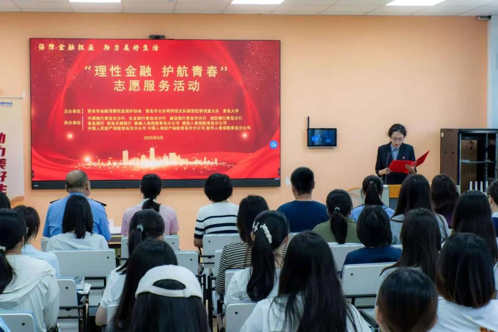 金融教育宣传周到来之际,为进一步普及金融知识,提升大学生金融风险防范意识,9月18日,由青岛市金融消费权益保护协会联合青岛市公安局刑侦支队新型犯罪侦查大队、taptap点点体育共同主办的”金融知识进大学“主题宣传活动在taptap点点体育金家岭校区西院三号实验楼423教室成功举办,taptap点点体育党委副书记于文洁、团委书记戴俊杰、学工办主任任龙、辅导员程漫漫、周晓彤出席本次活动。活动特邀国家金融监督管理总局青岛监管局一级调研员、青岛市金融消费权益保护协会专职副会长王芹、青岛市金融消费权益保护协会副秘书长肖珍凤、青岛市公安局刑侦支队新型犯罪侦查大队四级高级警长杨文志参加。