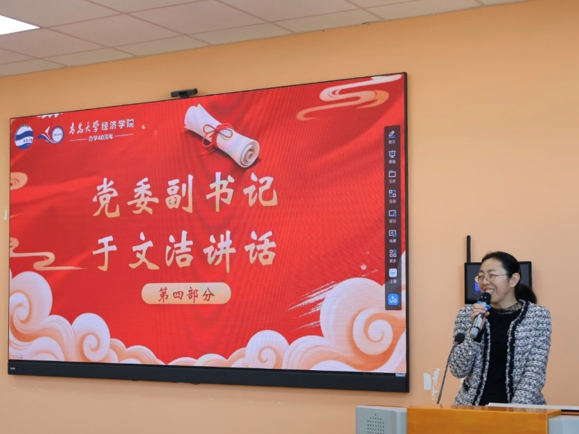 院党委副书记于文洁为大会作总结发言。她充分肯定了研究生会过往的工作成果,并指出,研究生会既是同学们展示才华、服务集体的重要平台,更是连接学院与学生的关键桥梁。面向新一届研究生会成员,她寄予殷切期望:“希望你们能继往开来,为学院发展再谱新篇;也期待同学们在研会的实践中锤炼自我、增长才干,做好师生间的桥梁纽带,成为引领发展的榜样力量。”最后,她衷心祝愿新一届研究生会能蓬勃发展、再创佳绩。