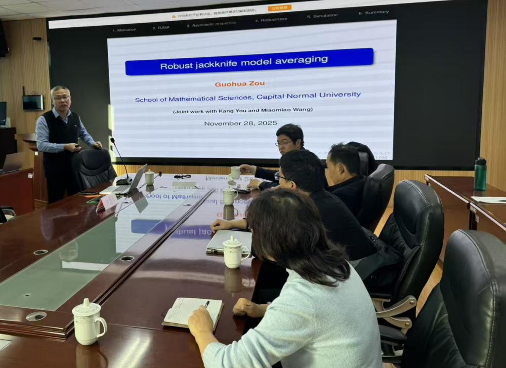 2025年11月28日周五上午9点,名家讲堂系列学术讲座在学院三号实验楼307会议室举行。本次讲座的主题为“Robust Jackknife Model Averaging”,由首都师范大学的邹国华教授主讲。