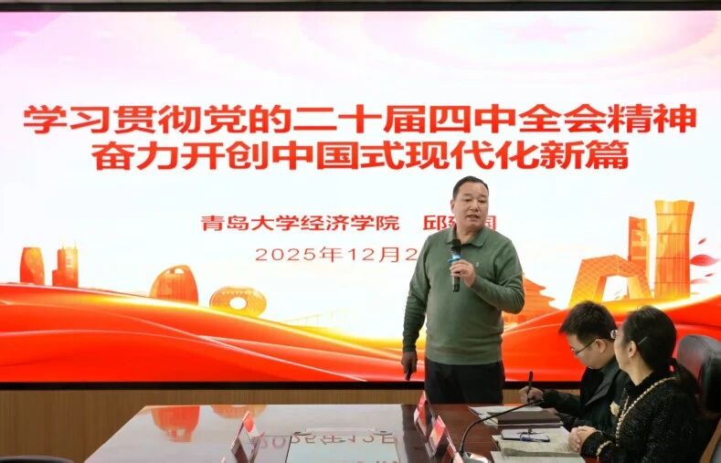 会上,学校学习贯彻党的二十届四中全会精神宣讲团成员、taptap点点体育党委书记邱建国作党的二十届四中全会精神专题宣讲报告。他指出,党的二十届四中全会是在“十四五”规划顺利完成、迈向2035年基本实现社会主义现代化目标的关键节点召开的一次重要会议,全会审议通过的《中共中央关于制定国民经济和社会发展第十五个五年规划的建议》,为未来五年乃至更长时期我国经济社会发展指明了方向、提供了遵循。