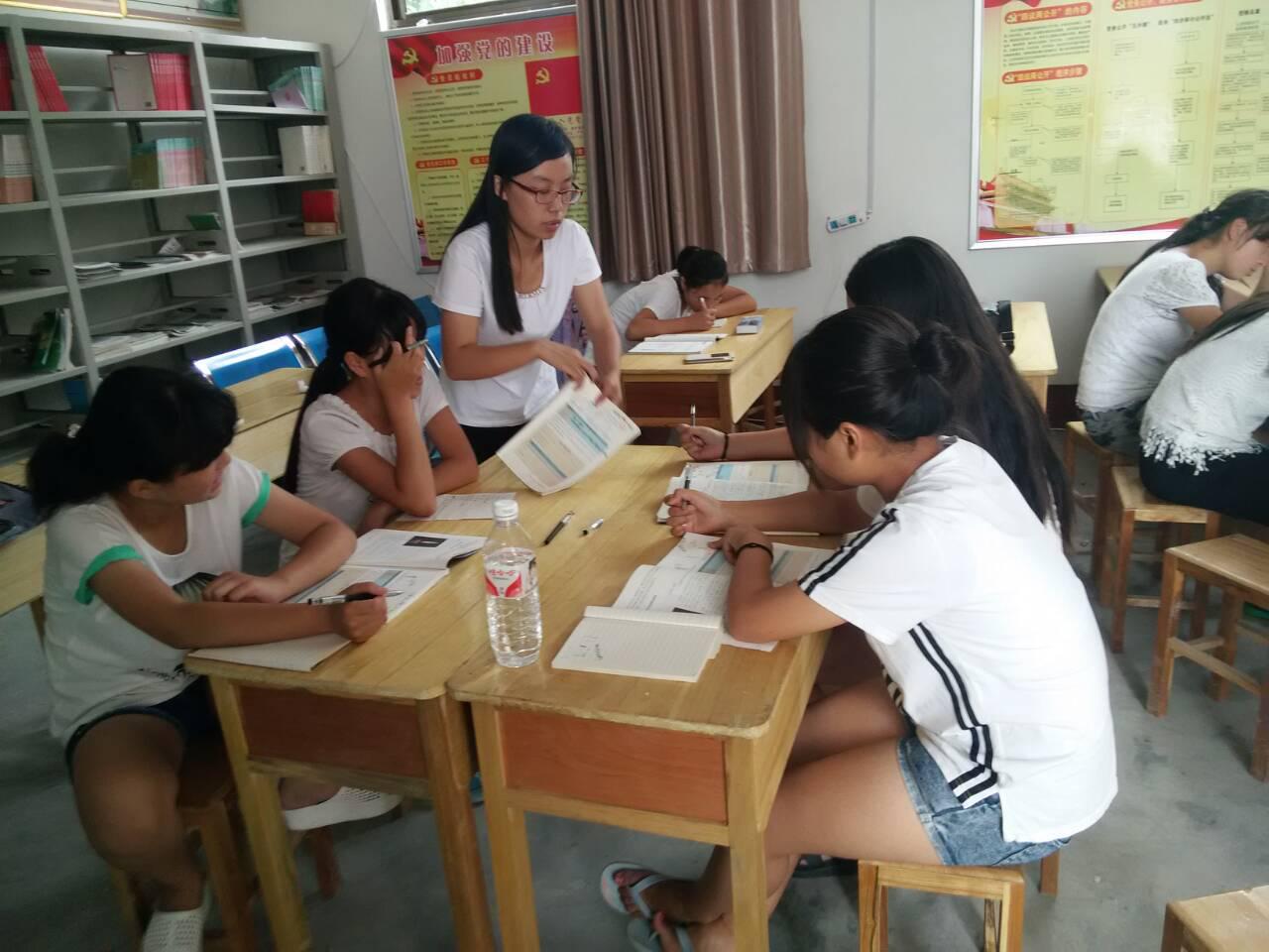 团队教学情况逐步进入正轨。此次支教活动采取分年级教学模式来进行,即相同年级的同学在一起上课,按年级来分配老师,教学内容涉及小学阶段的语文、数学和英语,初中阶段的数学、英语、化学、生物以及高中阶段的英语和物理。上课期间,同学们认真听讲,小学阶段的课堂不时传来朗读课文和背诵英语的声音,初中阶段的课堂讨论问题的声音不绝于耳,高中阶段的同学则认真地计算每一道题,表情专注,全神贯注。下课期间,同学们或在外放松,或钻研题目,学习氛围非常浓厚。