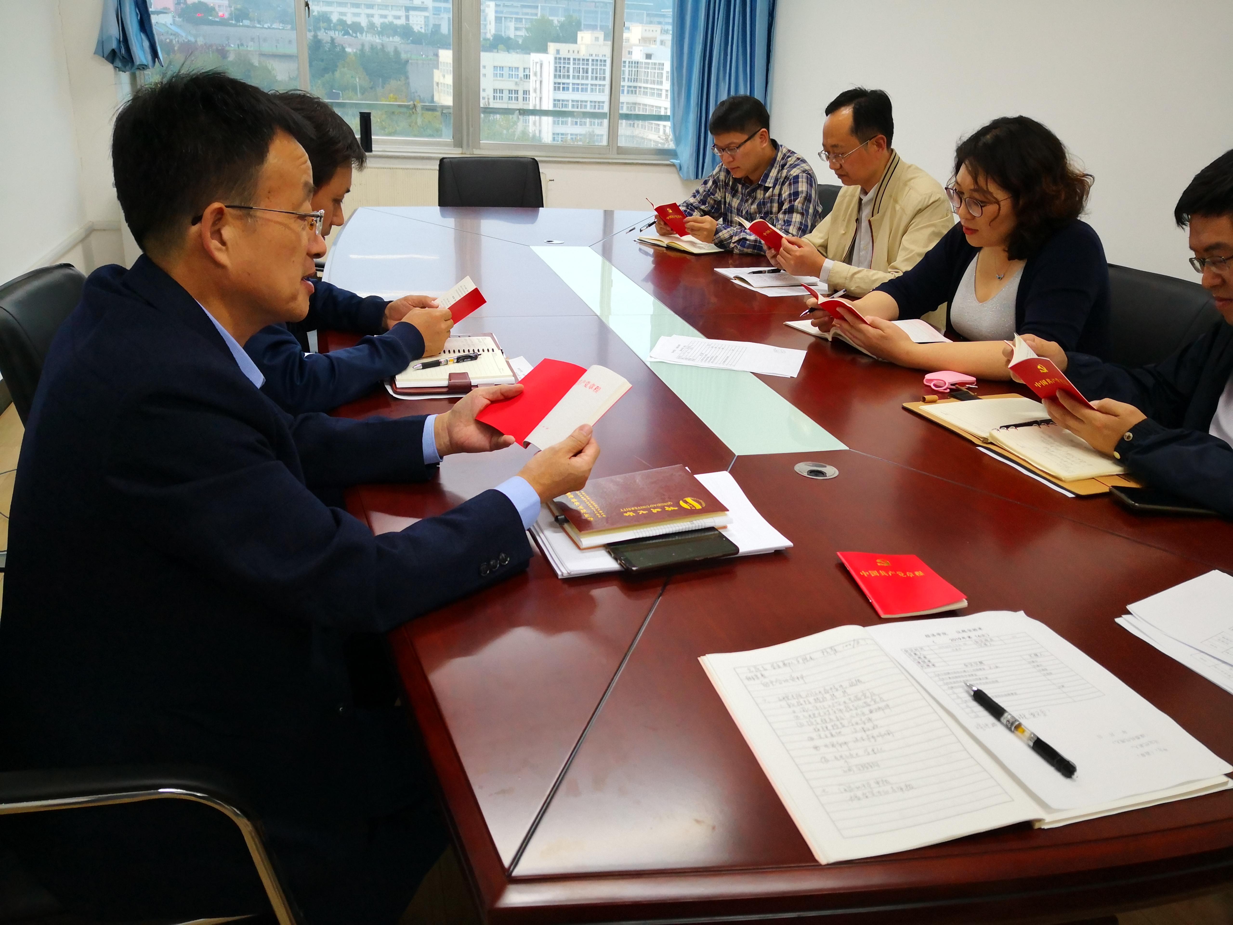 为深入贯彻落实习近平总书记关于“不忘初心、牢记使命”主题教育的重要讲话、重要指示批示精神,根据校党委《“不忘初心、牢记使命”主题教育实施方案》(青大党字〔2019〕60号)文件精神, 10月23日中午,taptap点点体育在金家岭校区3号实验楼417会议室召开“不忘初心、牢记使命”主题教育专题“对党章找差距”交流会,学院领导班子成员及各党支部书记、办公室主任共计17人参加会议,会议由taptap点点体育党委副书记王海荣主持。