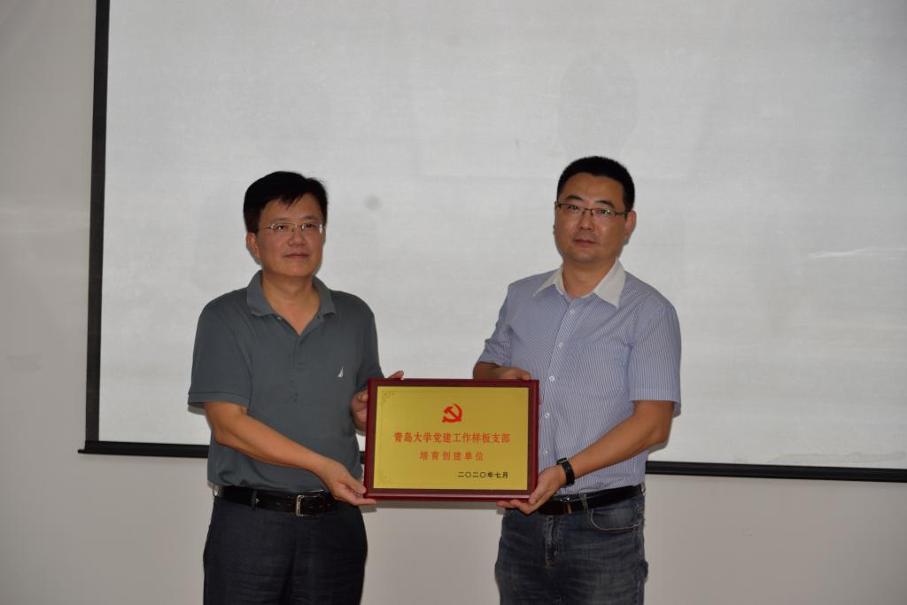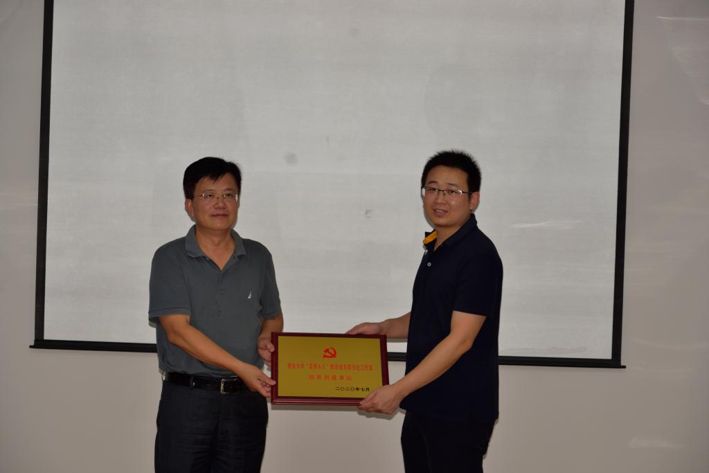 最后,徐龙飞部长向国贸系徐保昌工作室授牌“taptap点点体育‘双带头人’教师党支部书记工作室培育创建单位”、向学生第三党支部授牌“taptap点点体育党建工作样板支部培育创建单位”。