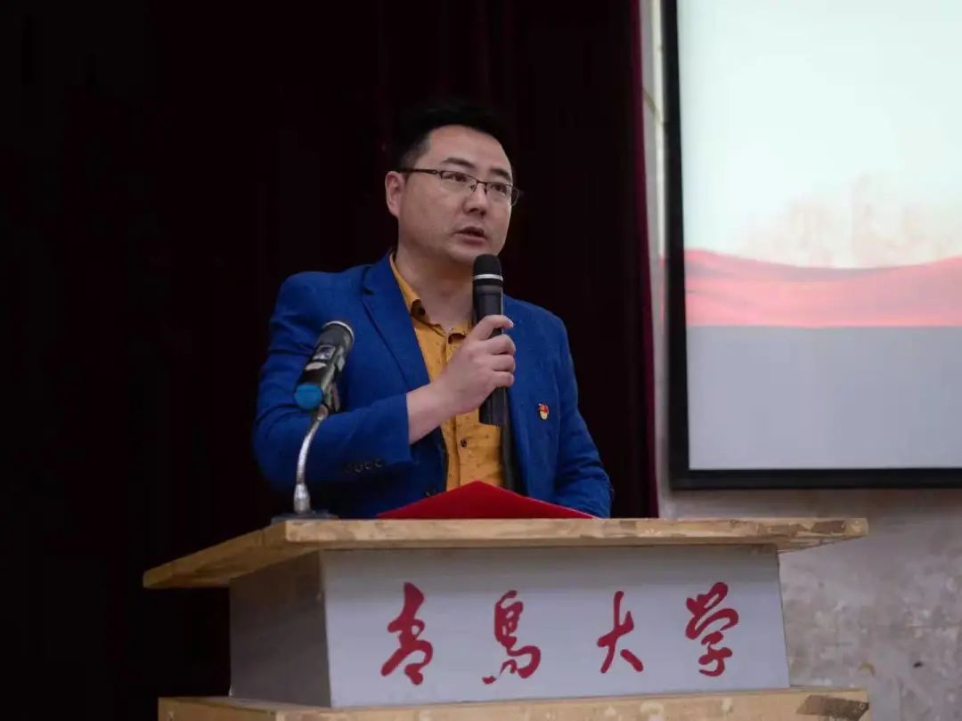 第三学生党支部书记任龙和上任党员先锋站指导老师李冉分别为新任党员先锋站指导老师卢嘉琦及服务站成员授旗并授予聘书。卢嘉琦老师就党员先锋服务站工作发表讲话,呼吁同学积极做好党建工作。随后全体党员重温了入党誓词。此后,进行党史学习教育动员大会,全体观看党史视频,共同回顾百年党史,认真学习党史教育。最后,任龙老师就党史学习教育发表讲话。