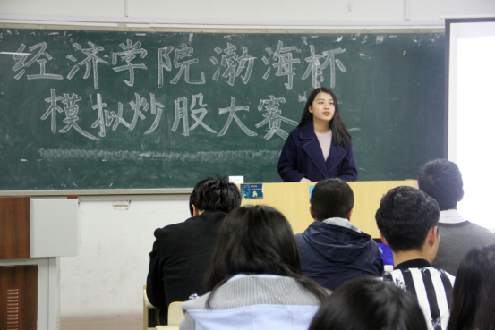 3月27日晚,由taptap点点体育学生会主办、渤海证券赞助的taptap点点体育“渤海杯”模拟炒股大赛开幕式在金家岭校区二号实验楼举行。渤海证券业务经理郭孟琦、成泽雨、董廷哲,青岛著名私募机构研究员丁维能出席此次开幕式。