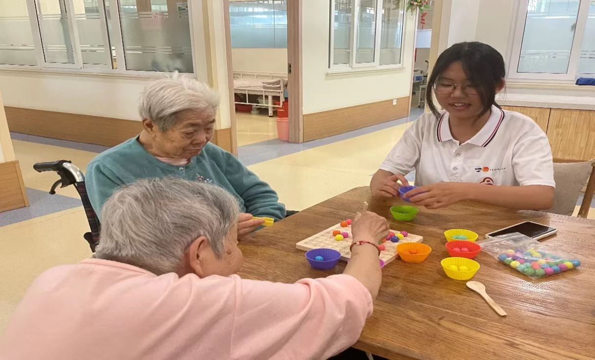 许多老年人在此次活动中了解到各种关于老年保健的实用知识,有助于更好地关注自身身体状况,享受更高质量的晚年生活。在深入社区一线进行老年认知症专项筛查服务活动的同时,志愿者们进入养老院,亲情陪伴老人。志愿者与老人们下棋、剪纸、做操,指导失智老人做娱乐健脑小游戏,为失能老人喂饭。