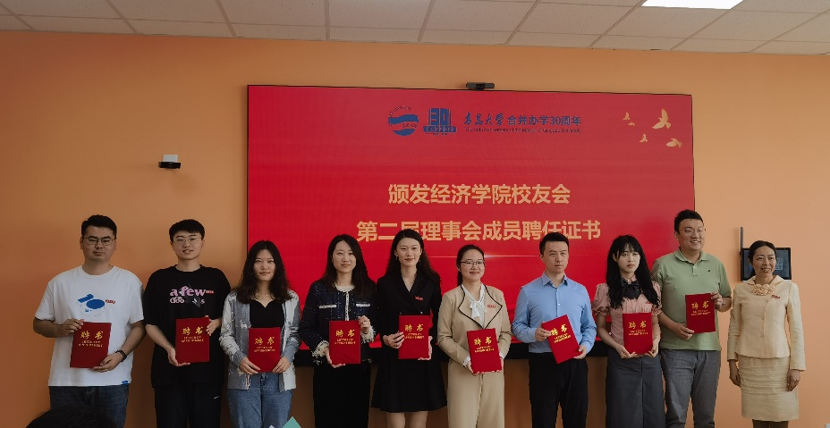 会上,1990级校友李勇代表新当选理事发言,2003级校友田雨代表新受聘校外导师发言,2020级本科生、院学生会主席秦艺源代表在校学生发言。学院领导班子成员为校友理事会成员和校外导师颁发聘书。