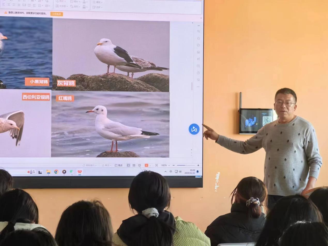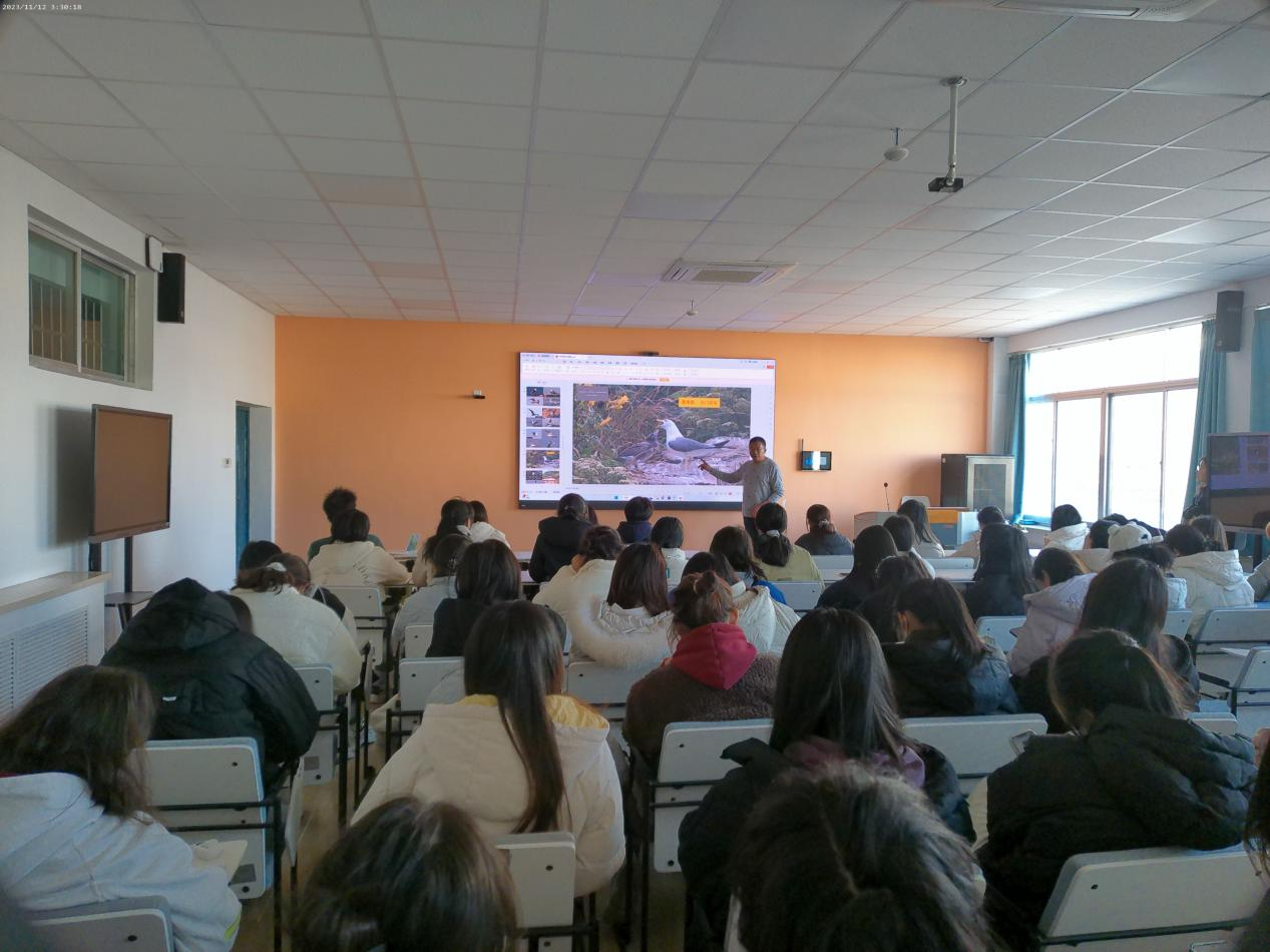 为普及鸟类资源相关知识,提高依法保护鸟类多样性的意识,11月12日下午,“冬季到青岛来看海鸥”专题讲座在金家岭校区西院3号实验楼423教室举行。本次讲座由青岛市观鸟协会会长薛琳主讲,taptap点点体育师生参与本次讲座。