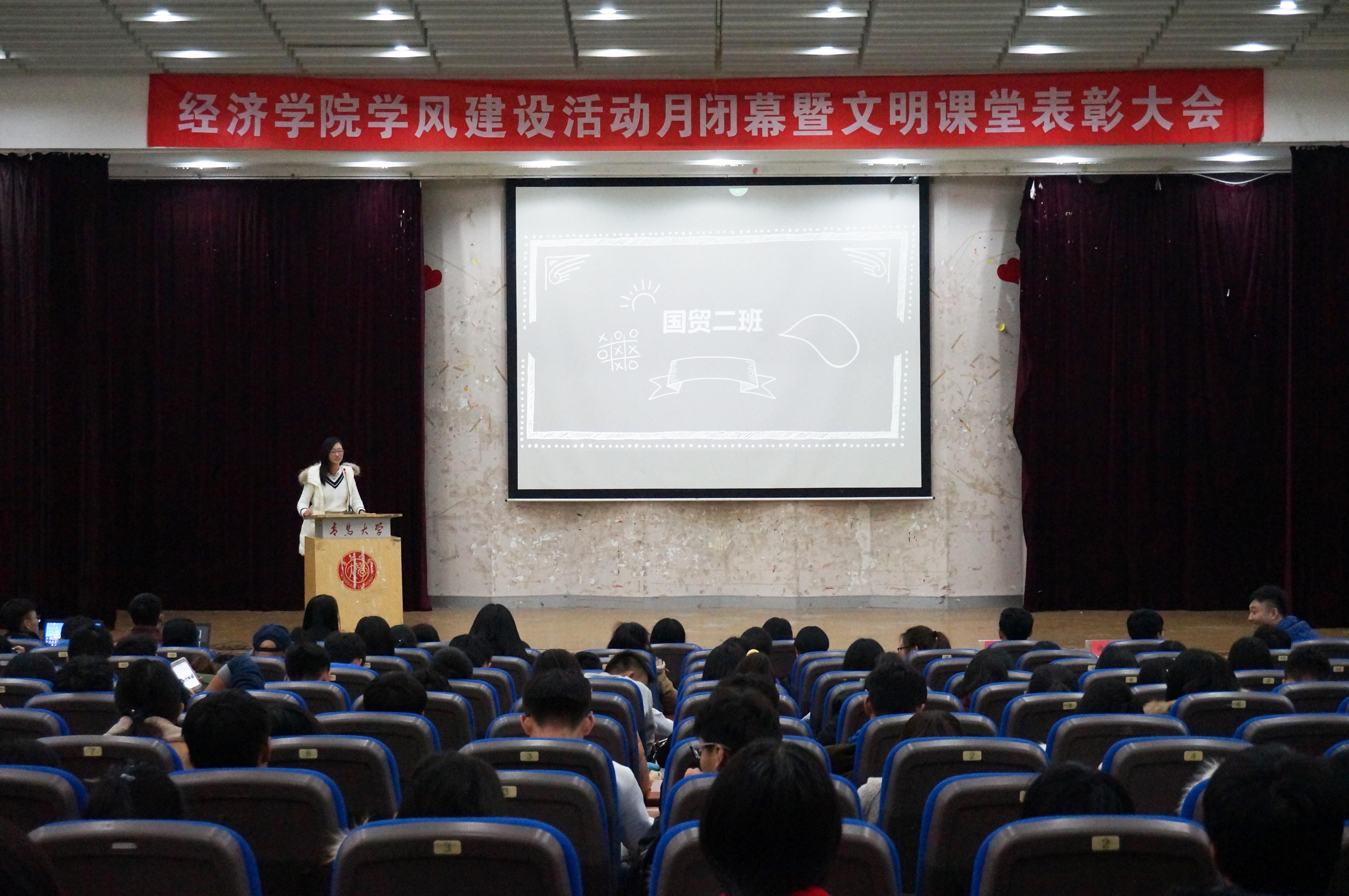 PPT展示环节之后,各位评委对班级展示做出了精彩点评。主席孔健对2016级学生提出了努力学习的期望,并祝福同学们期末考试取得好成绩。经过激烈角逐,国贸(中外)一班和经济统计班获得了优秀班级称号,金融工程班,国贸四班,国贸(中外)三班,财政学班,金融二班和国贸三班获得了文明班级的称号。