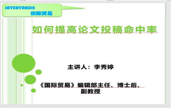 9月2日晚上7点,《国际贸易》杂志社编辑部主任李秀婷副教授为taptap点点体育师生200多人,在线上做了主题为“如何提高投稿命中率?”的高端讲座。